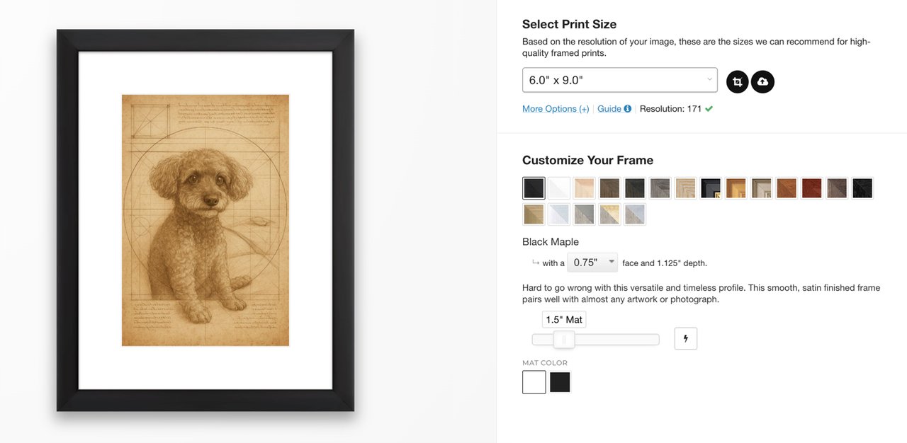 The real wow moment comes when you hang that framed portrait on your wall or place it on your desk. We’ve made it incredibly simple to turn your digital creation into a tangible, ready-to-display piece of art. Once you’ve created a pet portrait you love, you can instantly order a framed print in just a few clicks.