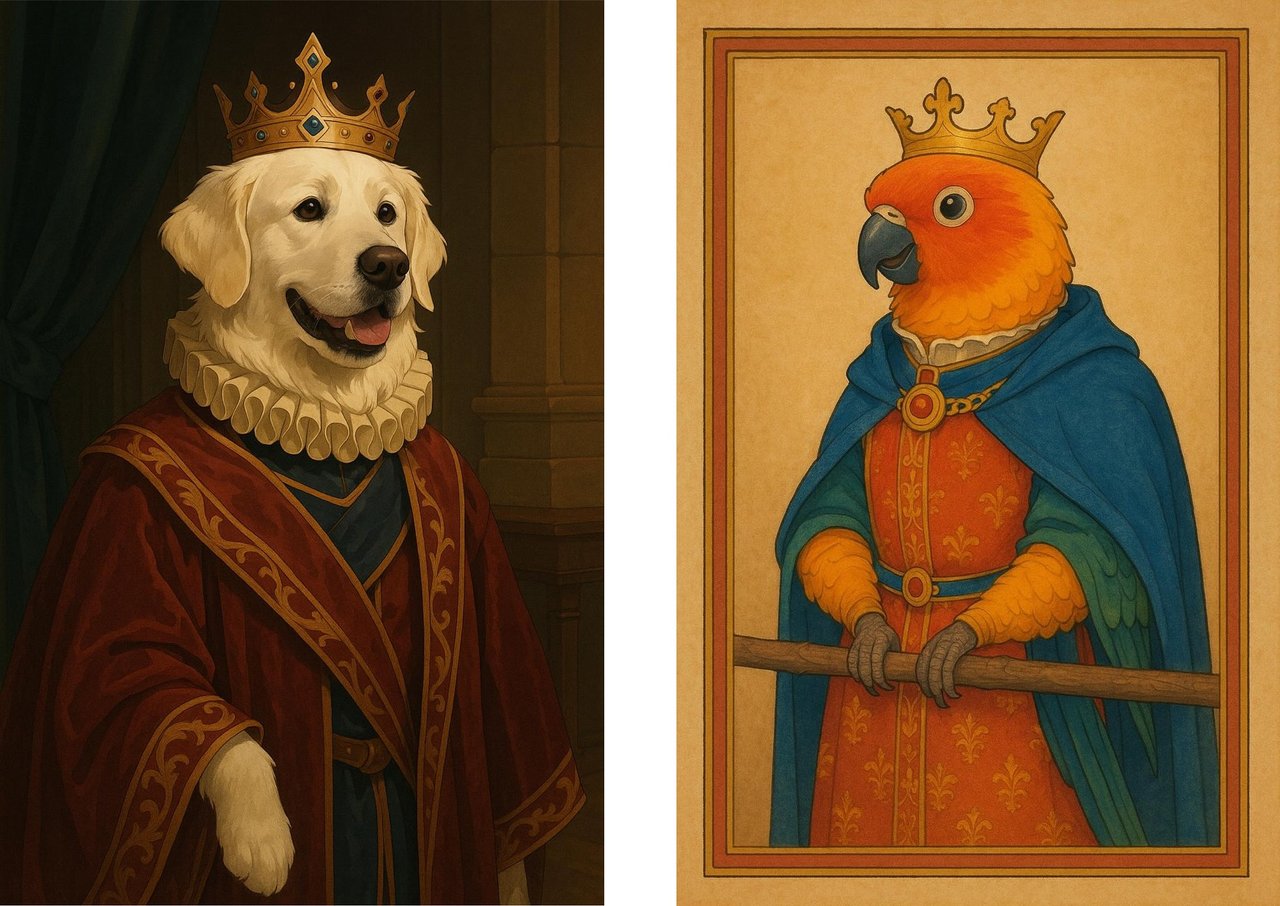 But why let all those adorable pet photos live only on screens? With our new AI Photo Editor, you can transform your pet photo into a stunning portrait – whether it’s a watercolor painting, a cartoon version, an impressionist masterpiece, or even a regal king or queen – and proudly display it in your home.
