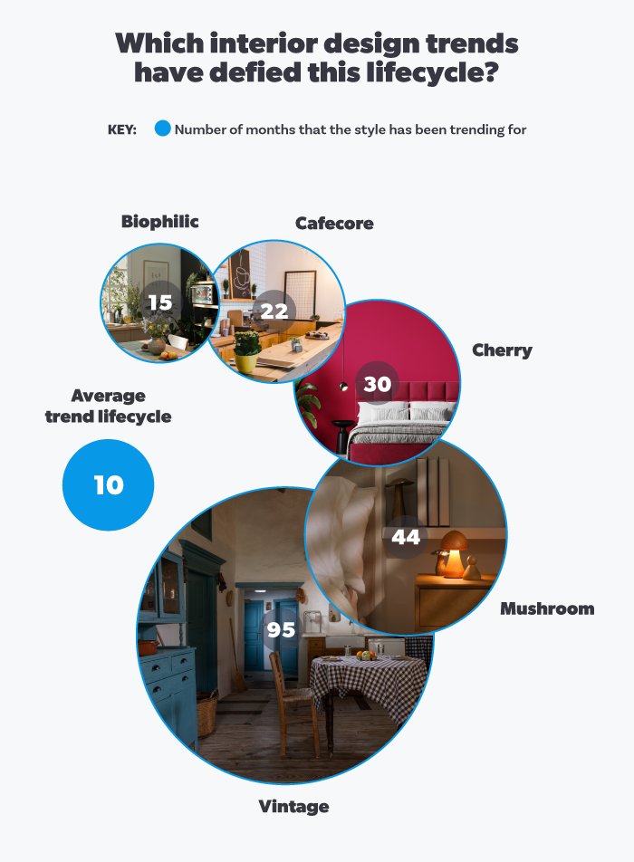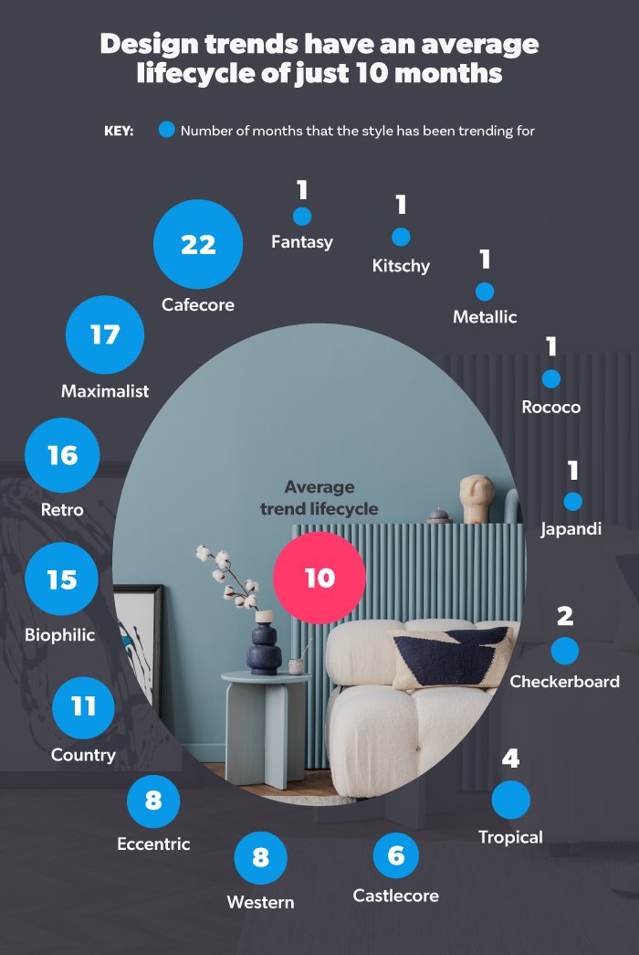Decorating the interior of a property is what transforms a house into a home. But, with a never-ending trend cycle, it can be hard to know where to start with your decor choices. Even though design trends often gain a lot of popularity, they can quickly become overdone and fall out of fashion, usually after 10 months of trending, based on our research.