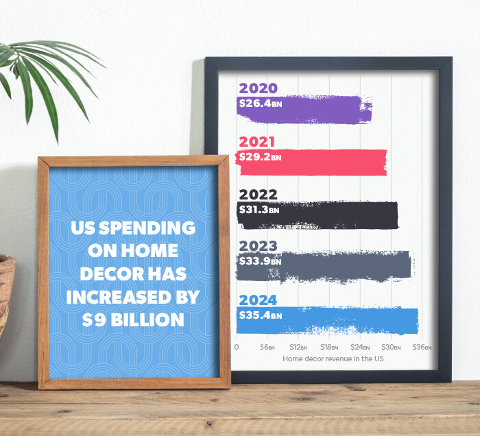 Figures show that annual home decor revenue in the US has grown year-on-year in recent years and is projected to continue rising to reach $45 billion by 2029.