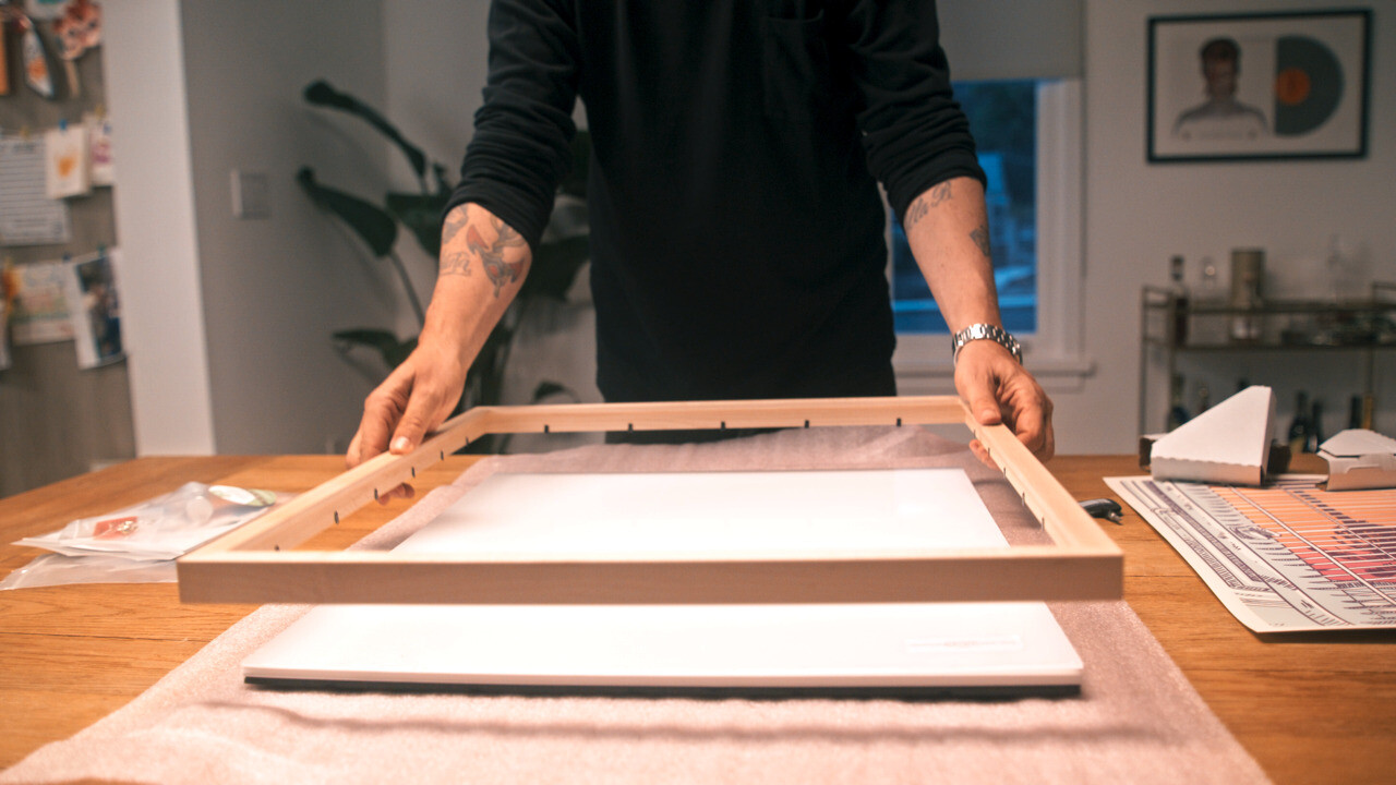2) On the other hand, a faster alternative is our DIY framing option. Within a few days of your order, we'll send a custom-made frame based on the dimensions you provide, along with all the necessary tools and instructions for you to assemble everything at home. This option significantly reduces the turnaround time, eliminates the need to send the artwork back and forth, and reduces the risk of anything getting lost or damaged in transit. It's also extremely satisfying and even fun for many of our customers!