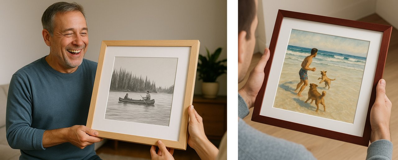 It's an easy way to bring dad's favorite moments or places to life in a brand new way, whether it's a pic of his favorite fishing spot, an unforgettable family trip, a quiet moment at home or any other meaningful memory you can put a creative twist on.
