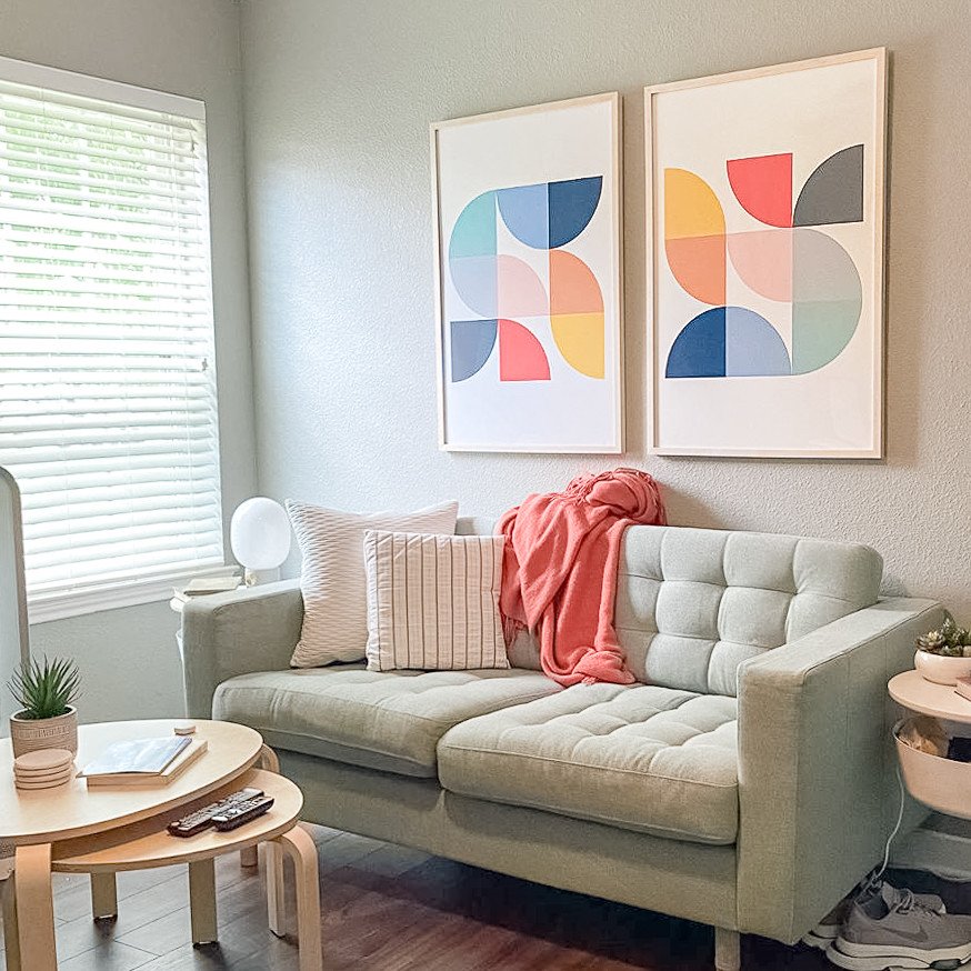 For example, homeowners with home offices or reading nooks tucked in the corner of their dining or living rooms can accent that portion of the walls with a different paint color and well-chosen wall decor to create visual boundaries - a room within a room. Framed posters are a great option for this, helping to set the tone of the space.